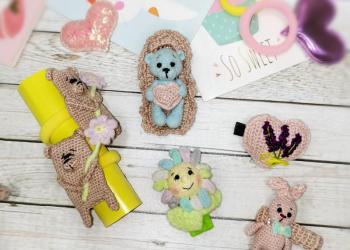 В наличии и на заказ вязаные заколки, резинки, броши. Срок изготовления 3-4 дня. Доставка почтой по России